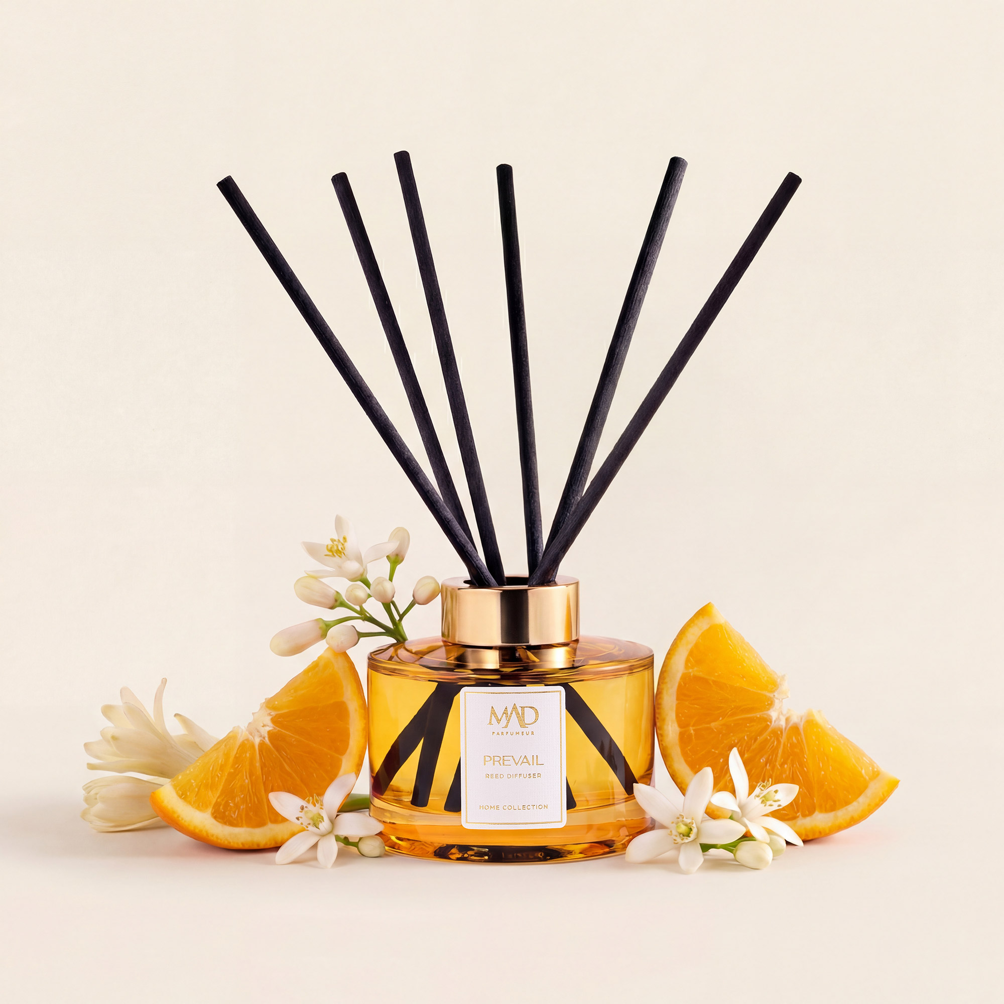 MAD Prevail веднаш го исполнува вашиот животен простор со свежа виталност преку освежителните ноти на портокалов цвет и мандарина. Овој уникатен амбиентален мирис се спојува со елегантната хармонија на зюмбулот, создавајќи импресивна и релаксирачка атмосфера во вашиот дом.